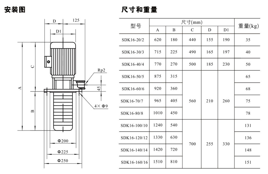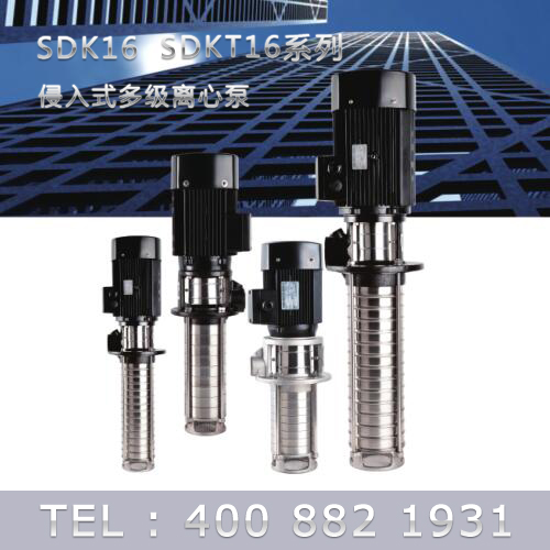 SDK16/SDKT16為配用標準電機的非自吸立式多級離心泵,電機軸和泵軸用聯(lián)軸器直接聯(lián)接的結(jié)構(gòu)。為滿足水槽或容器的安裝深度,可安裝空套的腔體來改變泵本身的侵入 深度。