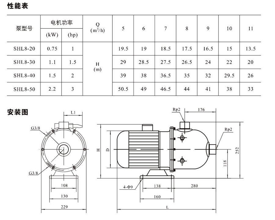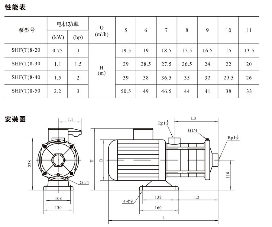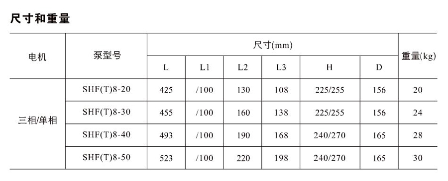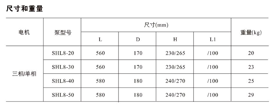 SHL/SHF/SHFT8為臥式多級非自吸多級離心泵,配加長軸電機。緊湊式結構使泵尺寸很小,軸向入口或徑向出口。