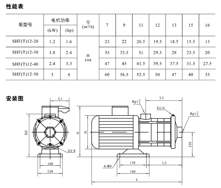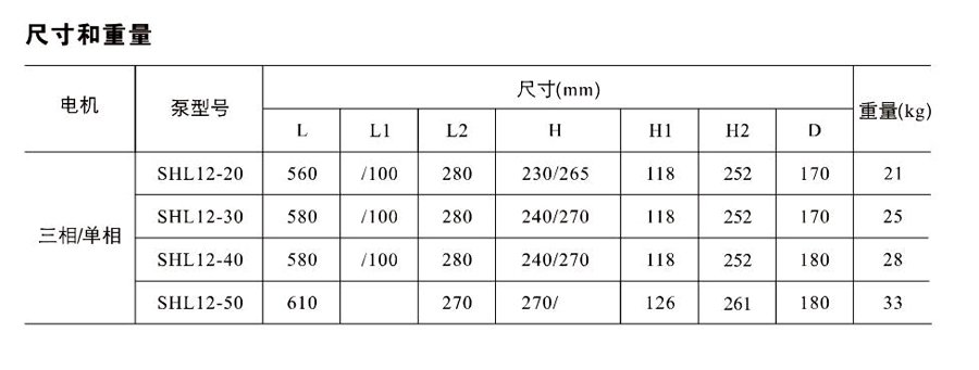 SHL/SHF/SHFT12為臥式多級(jí)非自吸多級(jí)離心泵,配加長(zhǎng)軸電機(jī)。緊湊式結(jié)構(gòu)使泵尺寸很小,軸向入口或徑向出口。