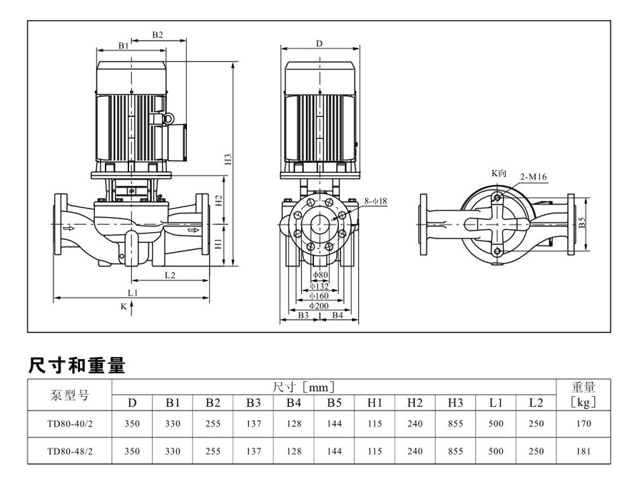 TD80系列單級(jí)管道離心泵,配有標(biāo)準(zhǔn)電 機(jī)和機(jī)械密封。此類產(chǎn)品的結(jié)構(gòu)與相近類型產(chǎn)品相比,更不易受到泵送液體中雜質(zhì)的影響。產(chǎn)品設(shè)計(jì)為頂部可拉出的拆裝形式,其可 以在不影響管路系統(tǒng)的情況下對(duì)泵進(jìn)行維修。所有泵采用創(chuàng)新式便拆式機(jī)械密封,更好機(jī)械密封無(wú)需拆卸電機(jī)。